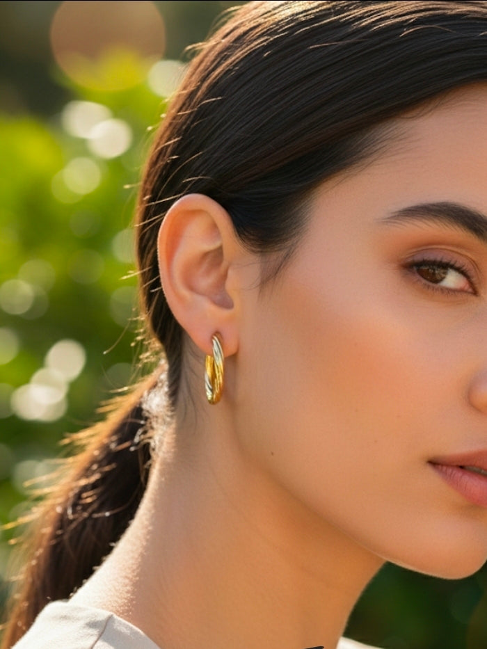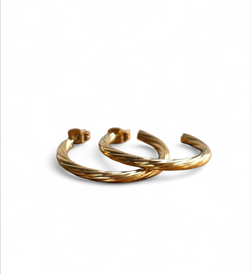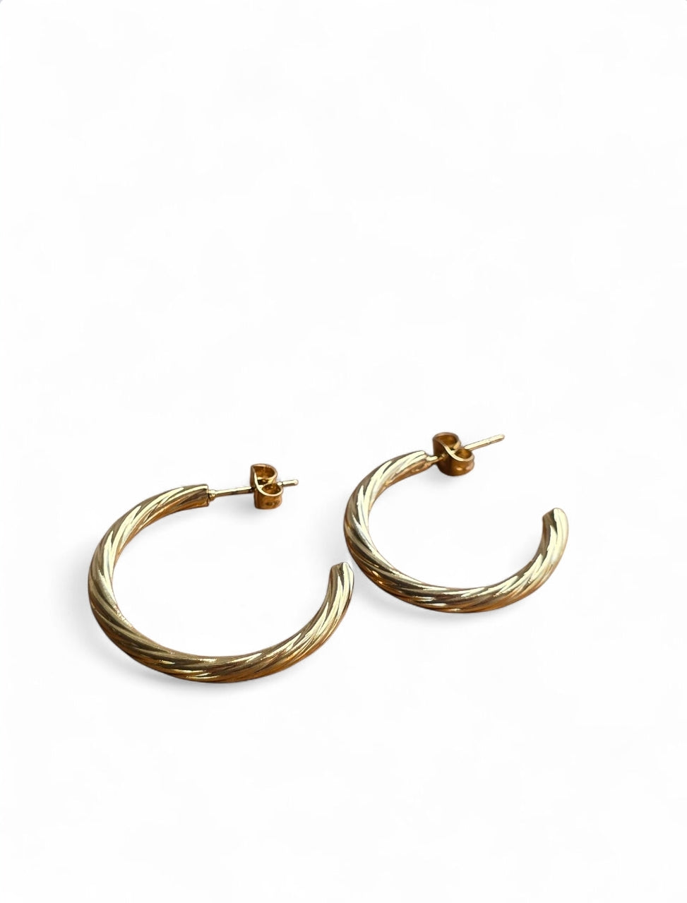 Ατσάλινα σκουλαρίκια σε κρίκους μεσαίου μεγέθους σε χρώμα χρυσό.