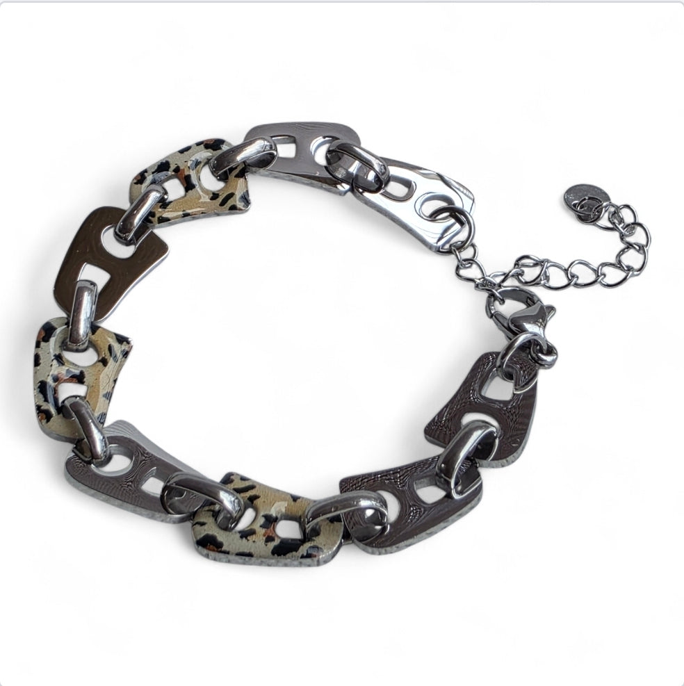 Βραχιόλι σε χρώμα ασημί και λεοπαρ SSBR20s