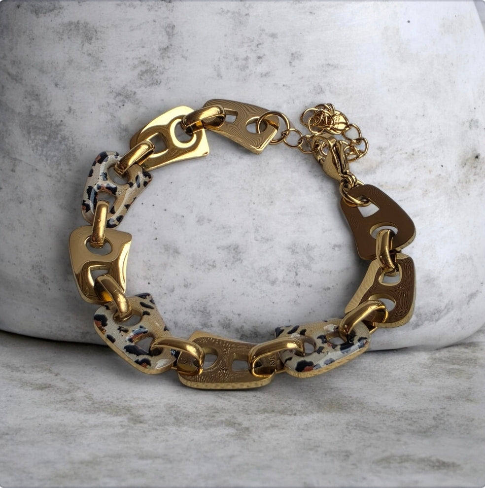 Βραχιόλι σε χρώμα ασημί και λεοπαρ