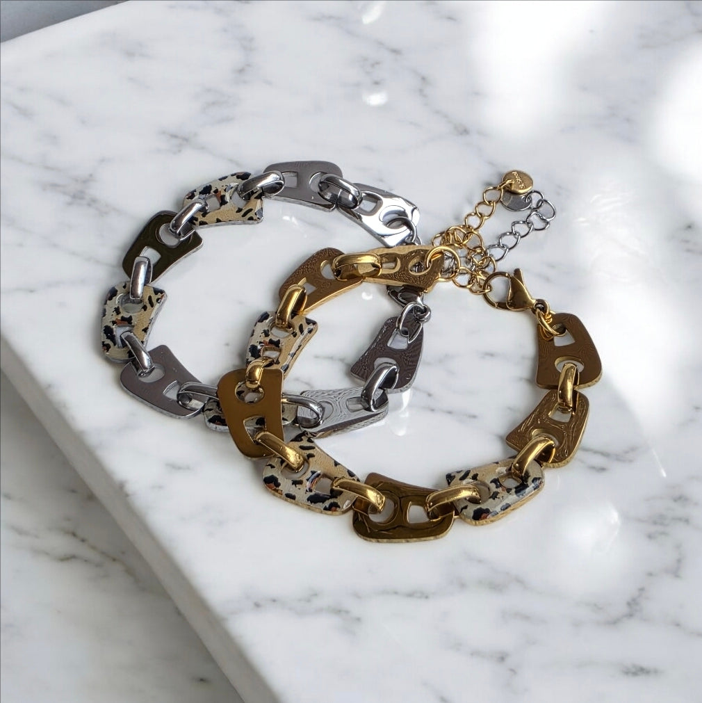 Βραχιόλι σε χρώμα ασημί και λεοπαρ SSBR20s