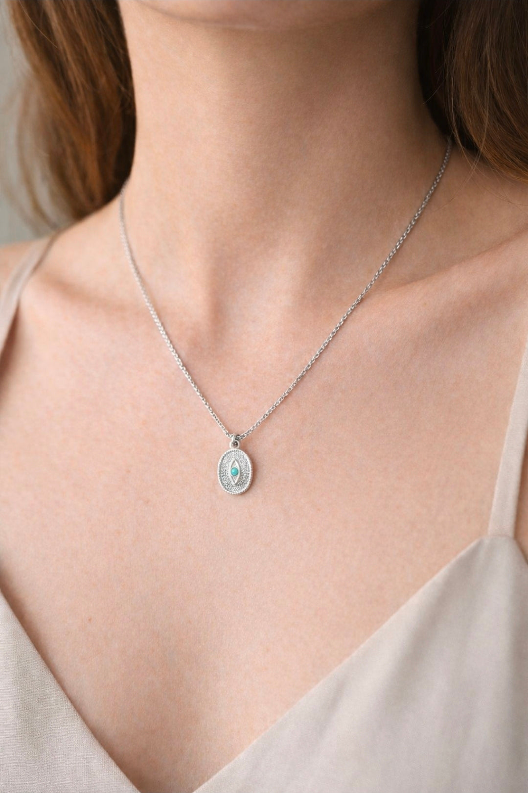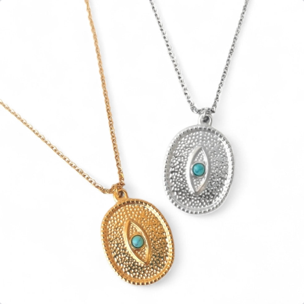 Κολιέ από ανοξείδωτο ατσάλι με γαλάζια πέτρα σε χρώμα ασημί
