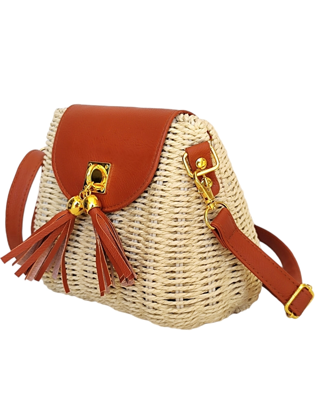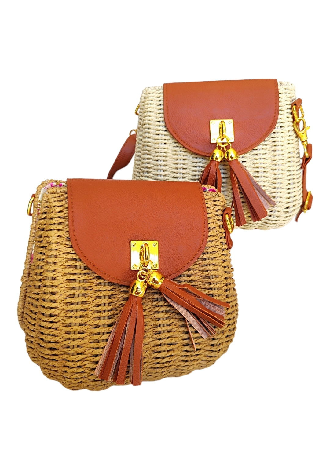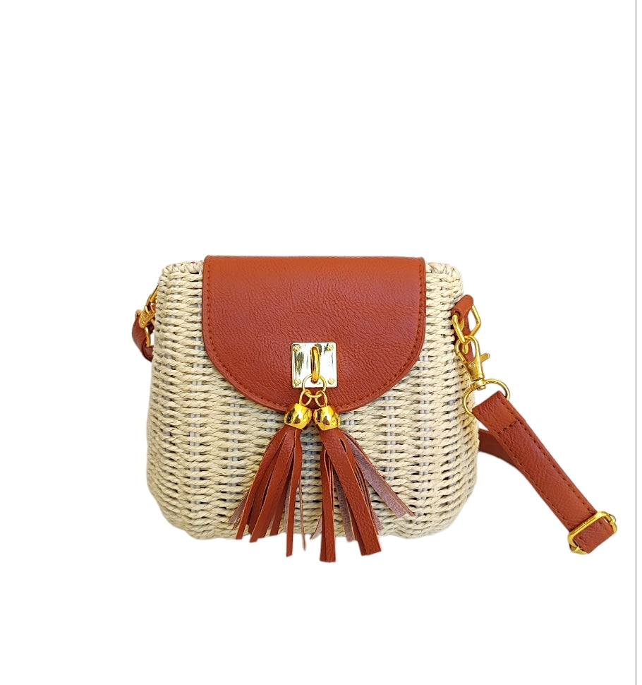 Γυναικεία οβάλ τσάντα ψάθινη με μακρύ λουράκι σε μπεζ χρώμα SSB12