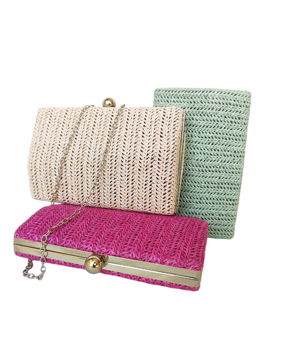 Γυναικεία τσάντα ψάθινη με μακριά αλυσίδα σε μπεζ χρώμα SSB10be