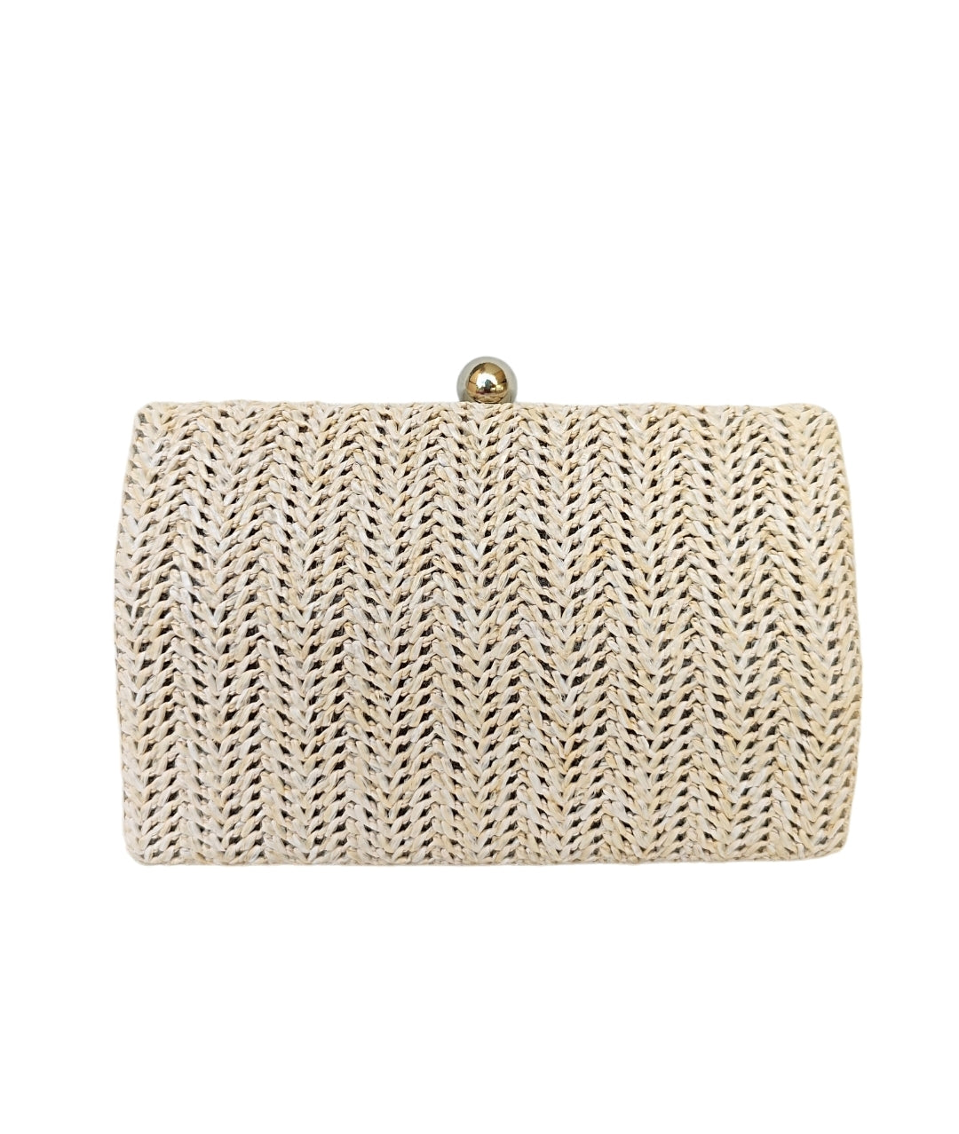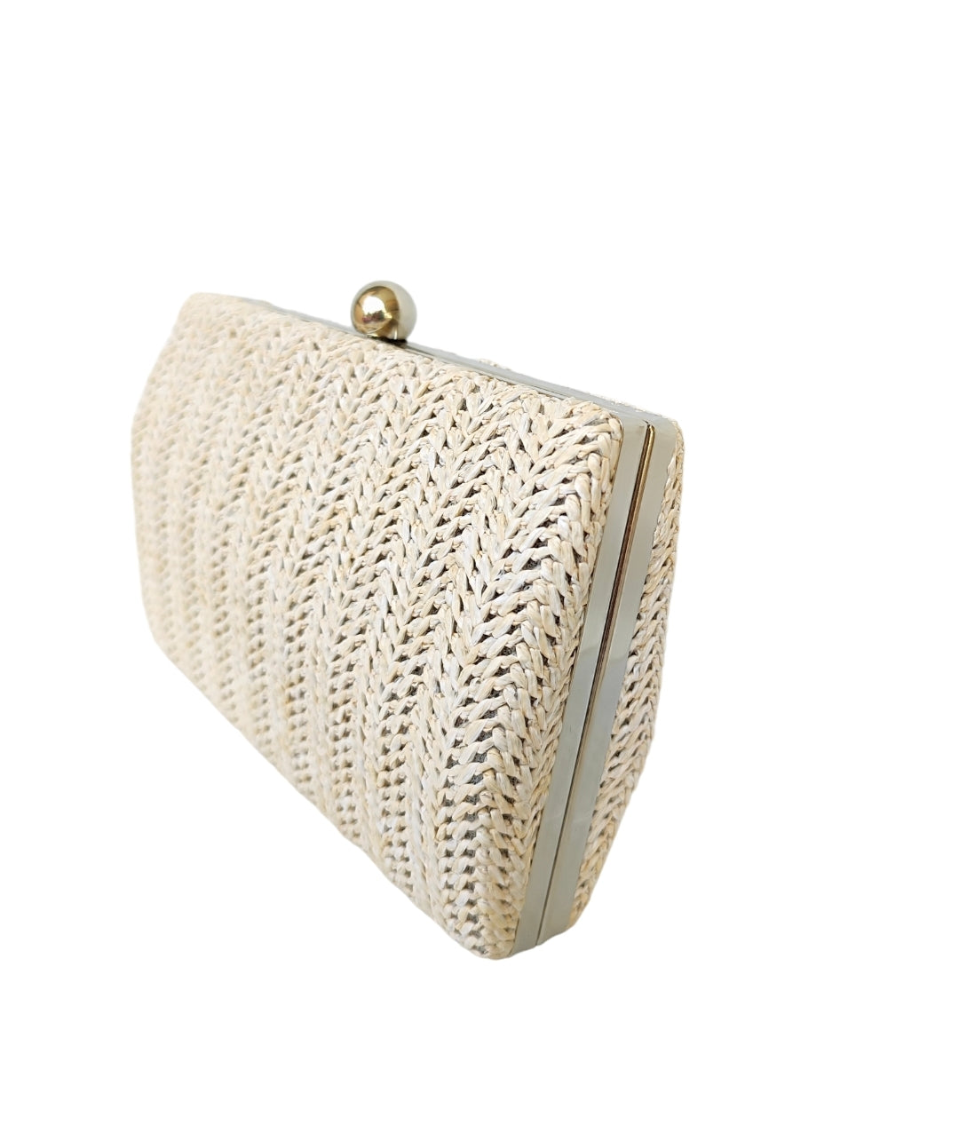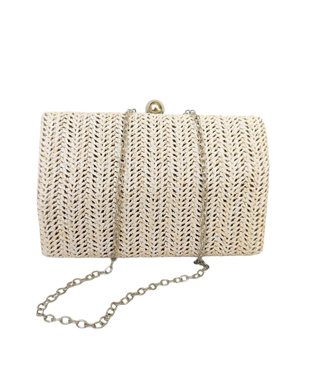 Γυναικεία τσάντα ψάθινη με μακριά αλυσίδα σε μπεζ χρώμα