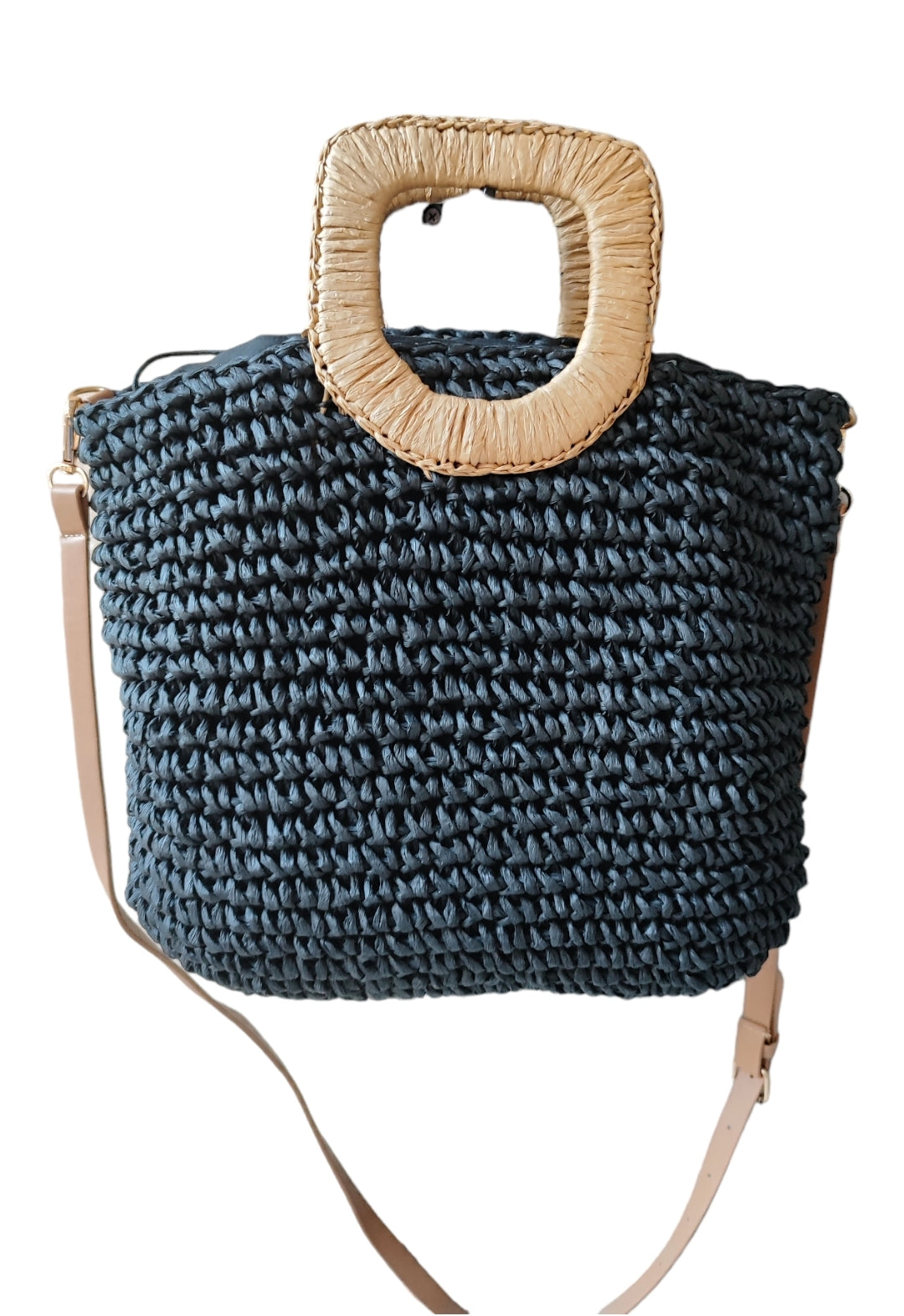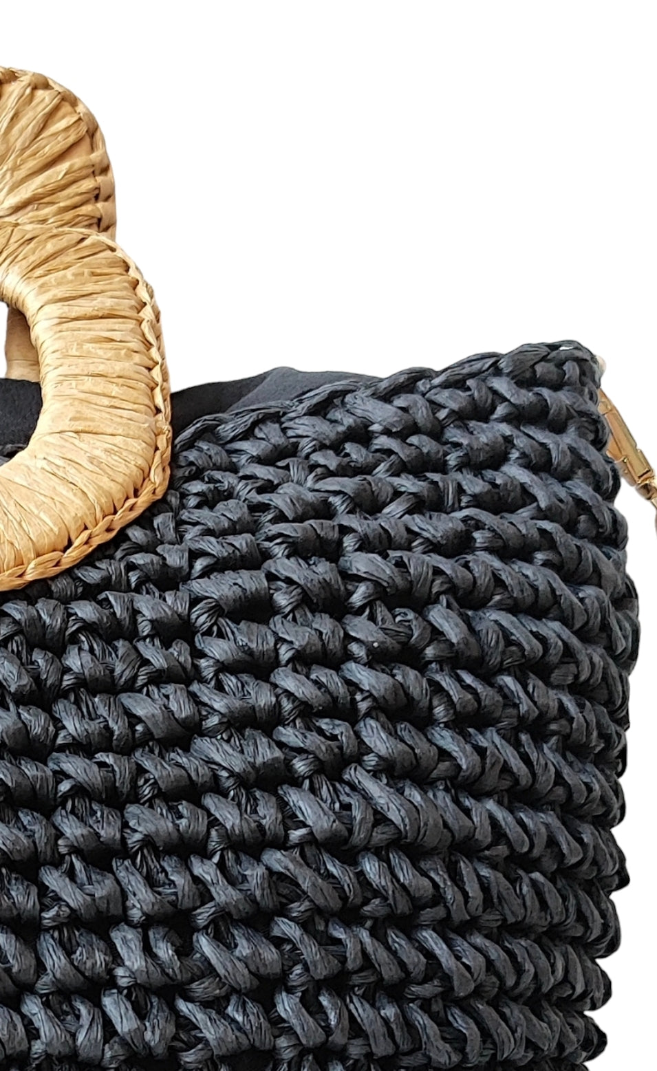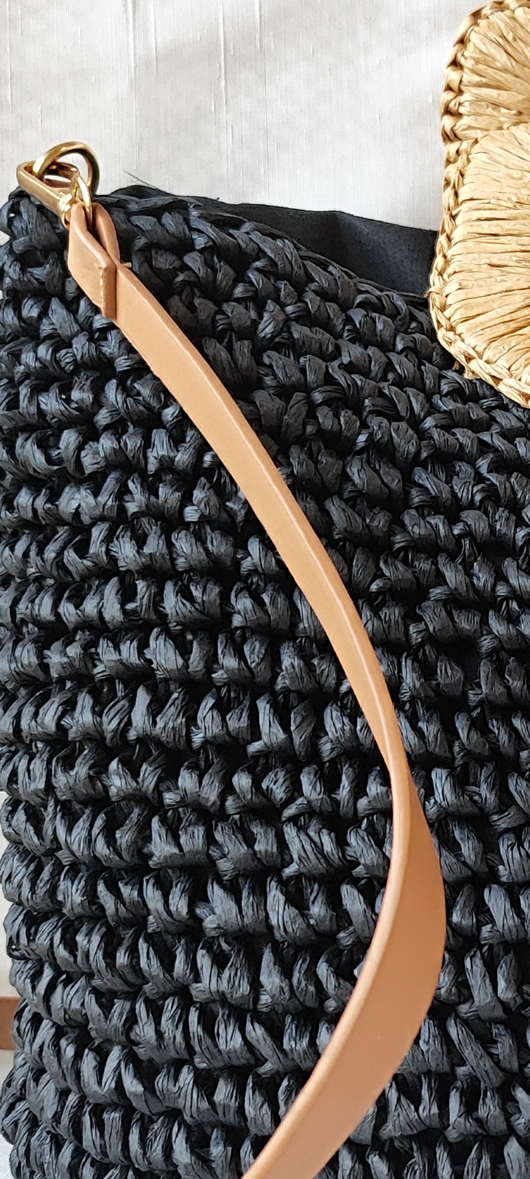 Γυναικεία ψάθινη τσάντα με μακρύ λουράκι σε μαύρο χρώμα