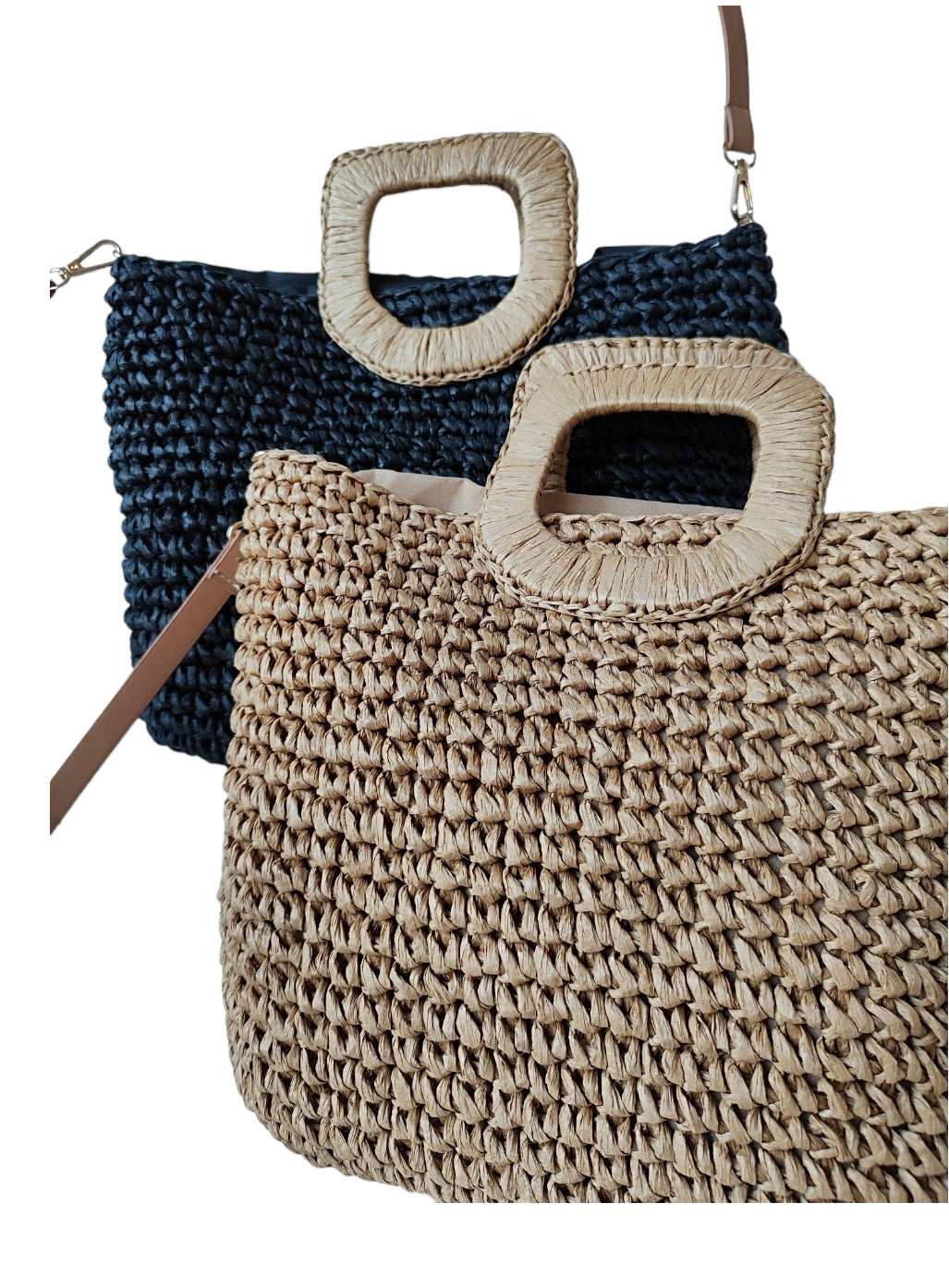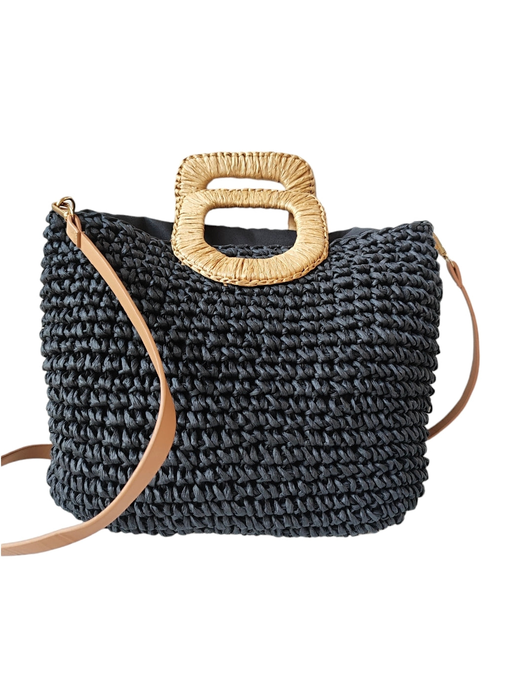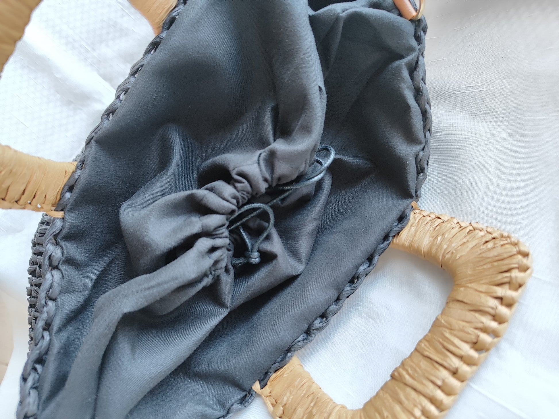 Γυναικεία ψάθινη τσάντα με μακρύ λουράκι σε μαύρο χρώμα