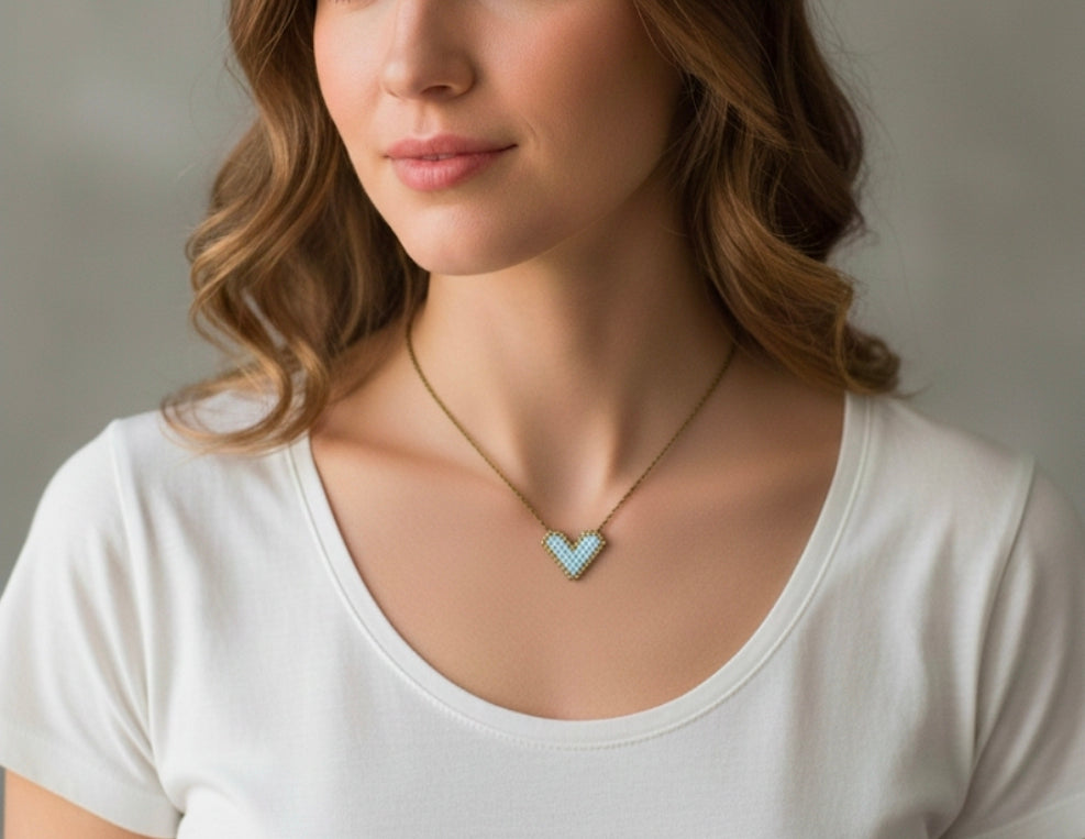 Κολιέ καρδιά φτιαγμένη από χάντρες και ανοξείδωτο ατσάλι σε χρώμα λευκό χρυσό
