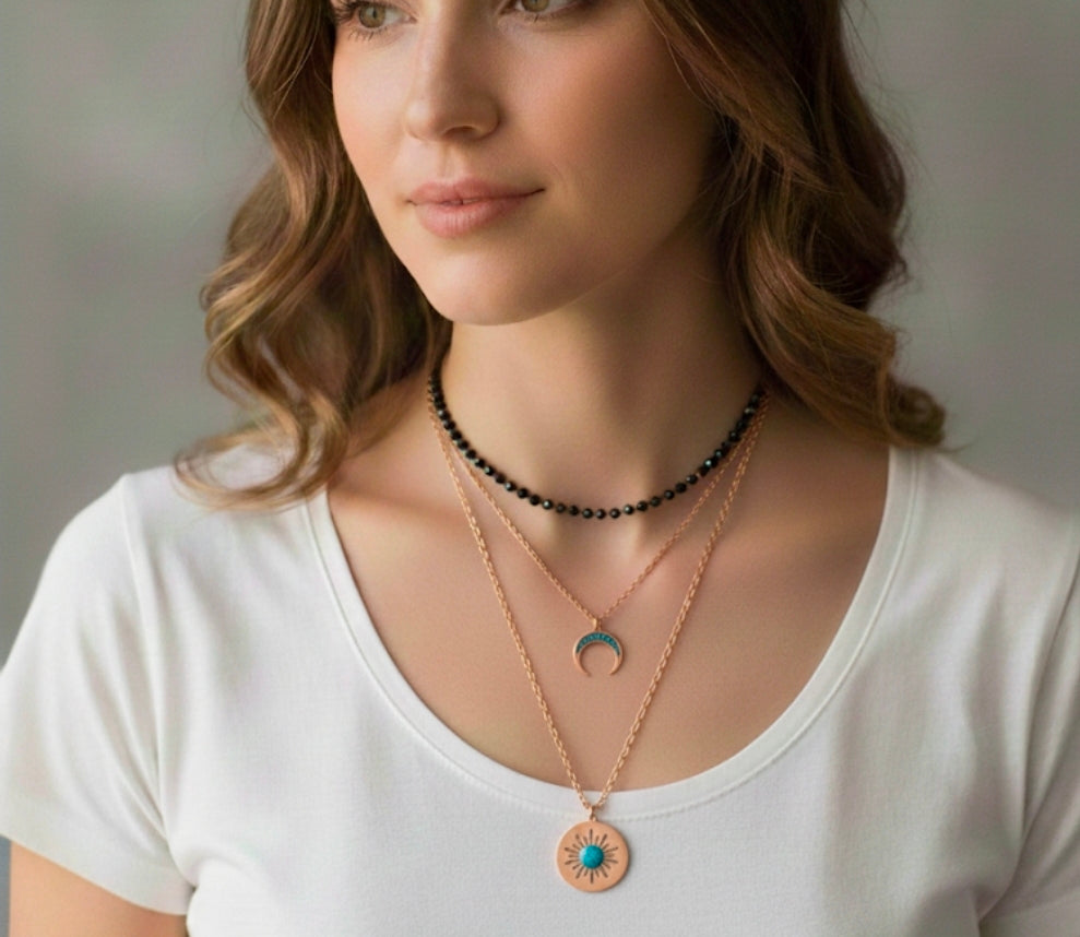 Κολιέ τριπλό με χάντρες από ανοξείδωτο ατσάλι σε χρώμα μαύρο χρυσό