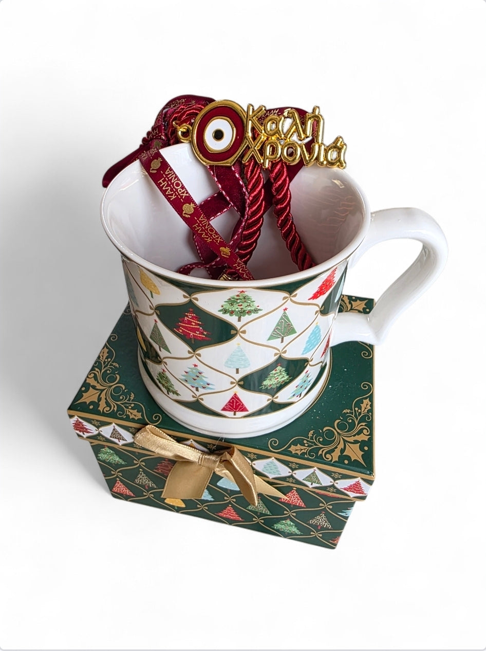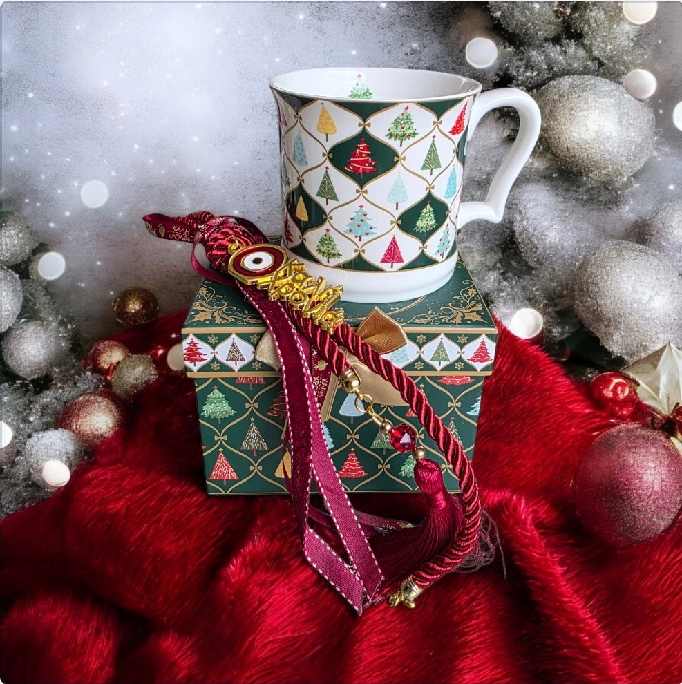 Σετ χειροποίητο γούρι μαζί με κούπα σε συσκευασία δώρου