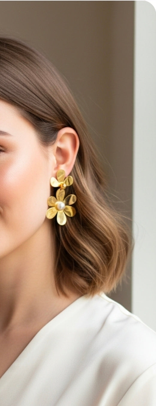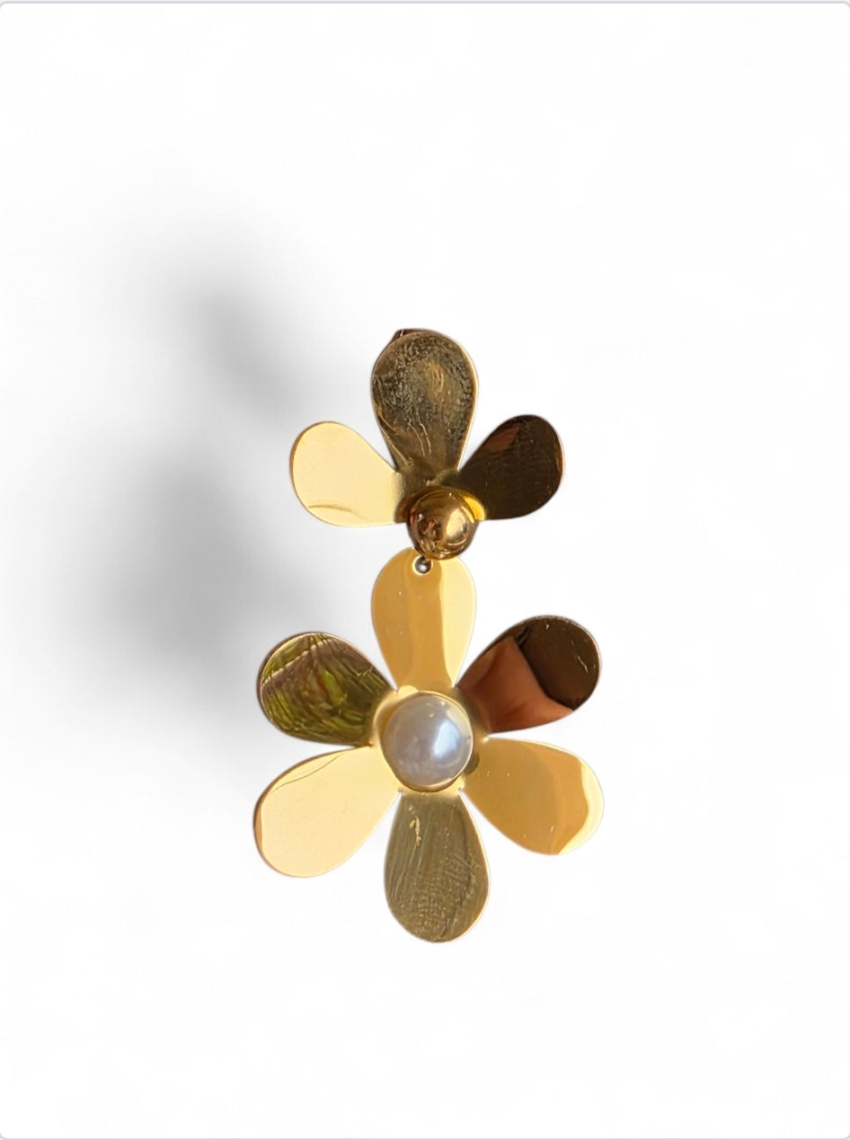 Σκουλαρίκια από ανοξείδωτο ατσάλι σε σχήμα λουλούδια με πέρλα σε χρυσό χρώμα