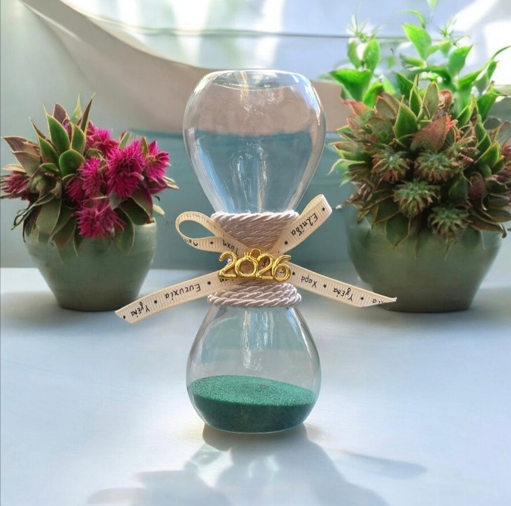 Χειροποίητο γούρι κλεψύδρα σε πράσινο χρώμα
