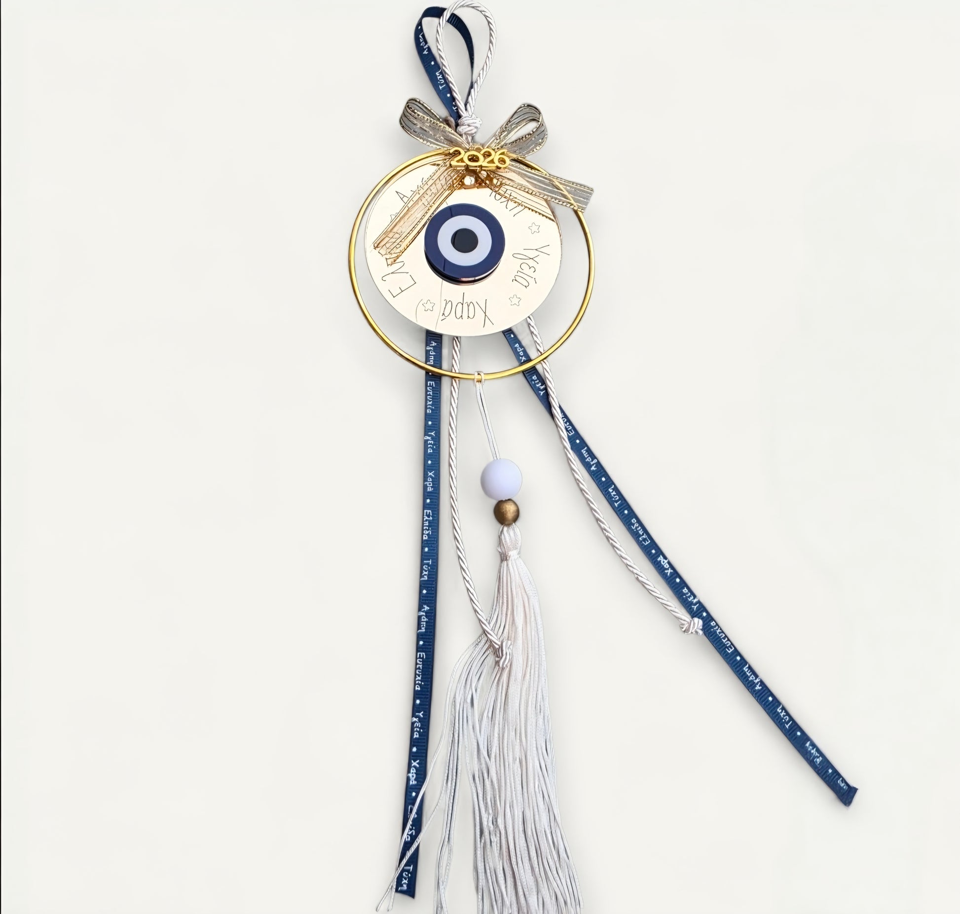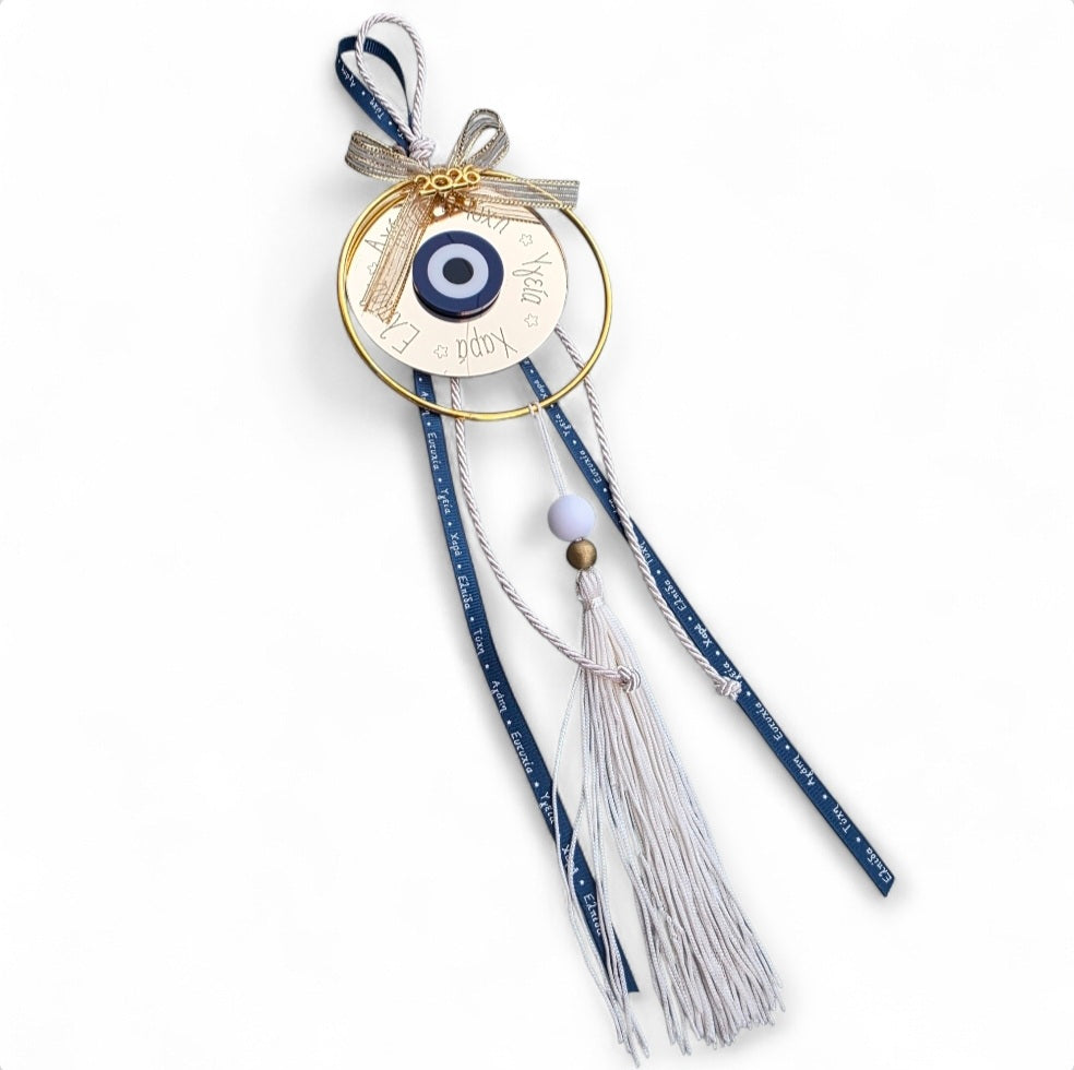 Χειροποίητο κρεμαστό γούρι καθρέφτης "ελπίδα, αγάπη,χαρά,υγεία,τύχη" SSG26